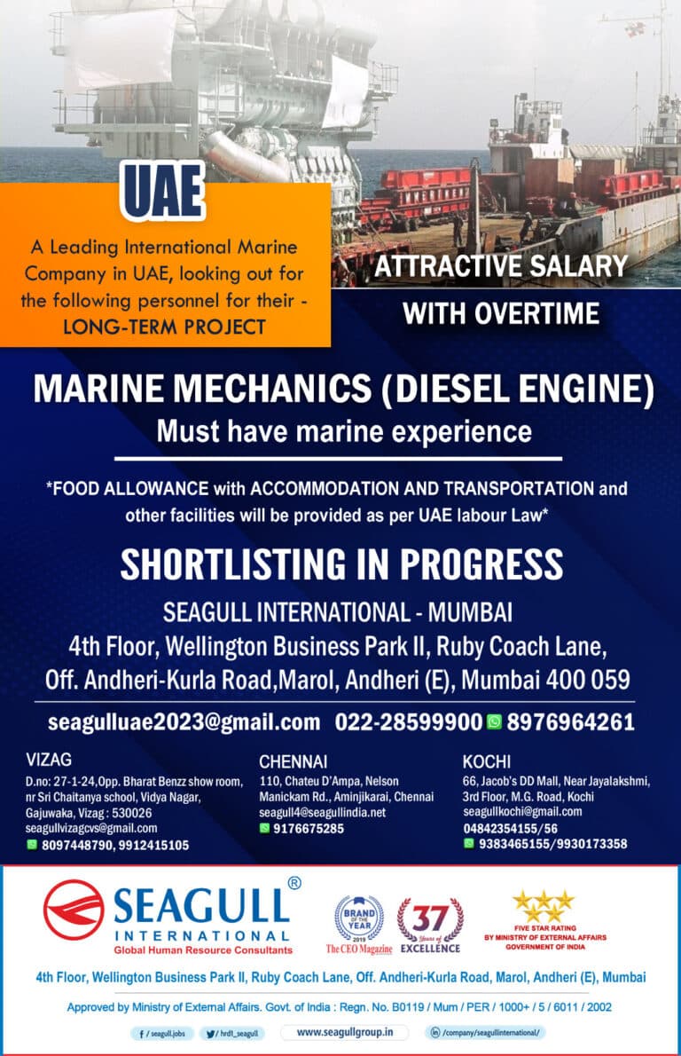 UAEA Leading International MarineCompany in UAE, looking out forthe following personnel for their –LONG-TERM PROJECTMARINE MECHANICS (DIESEL ENGINE)Must have marine …