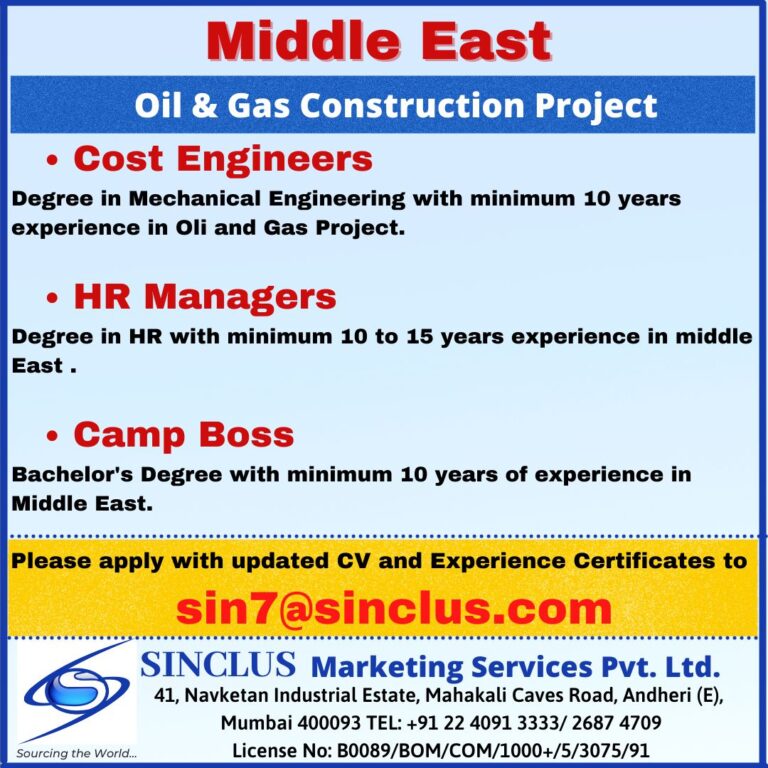 Middle EastOil & Gas Construction ProjectCost EngineersDegree in Mechanical Engineering with minimum 10 yearsexperience in Oli and Gas Project., HR …
