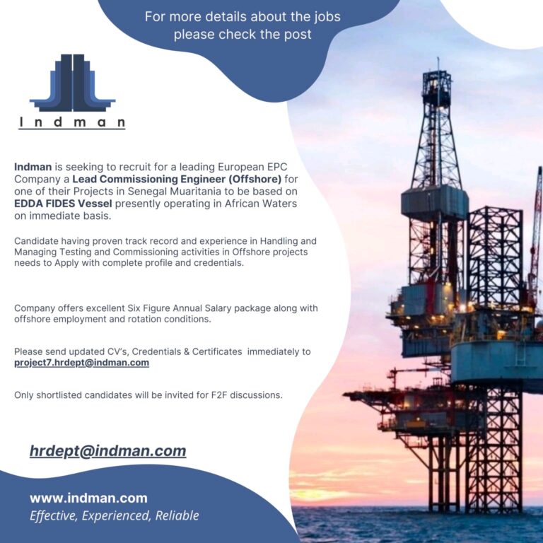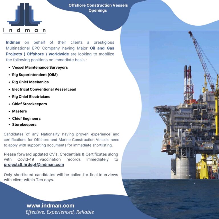 Indman on behalf of their clients a prestigiousMultinational EPC Company having Major Oil and GasProjects ( Offshore ) worldwide are …