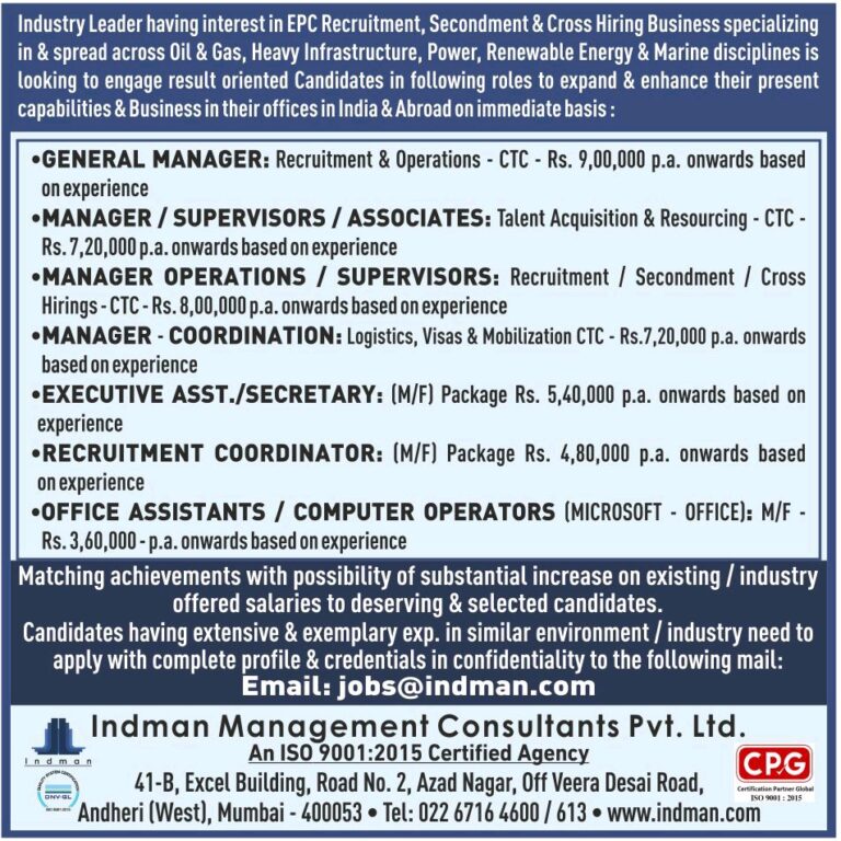 Industry Leader having interest in EPC Recruitment, Secondment & Cross Hiring Business specializingin & spread across Oil & Gas, Heavy …