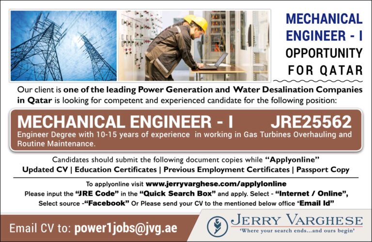 MECHANICAL ENGINEER – IOPPORTUNITY FOR QATAROur client is one of the leading Power Generation and Water Desalination Companiesin Qatar is …