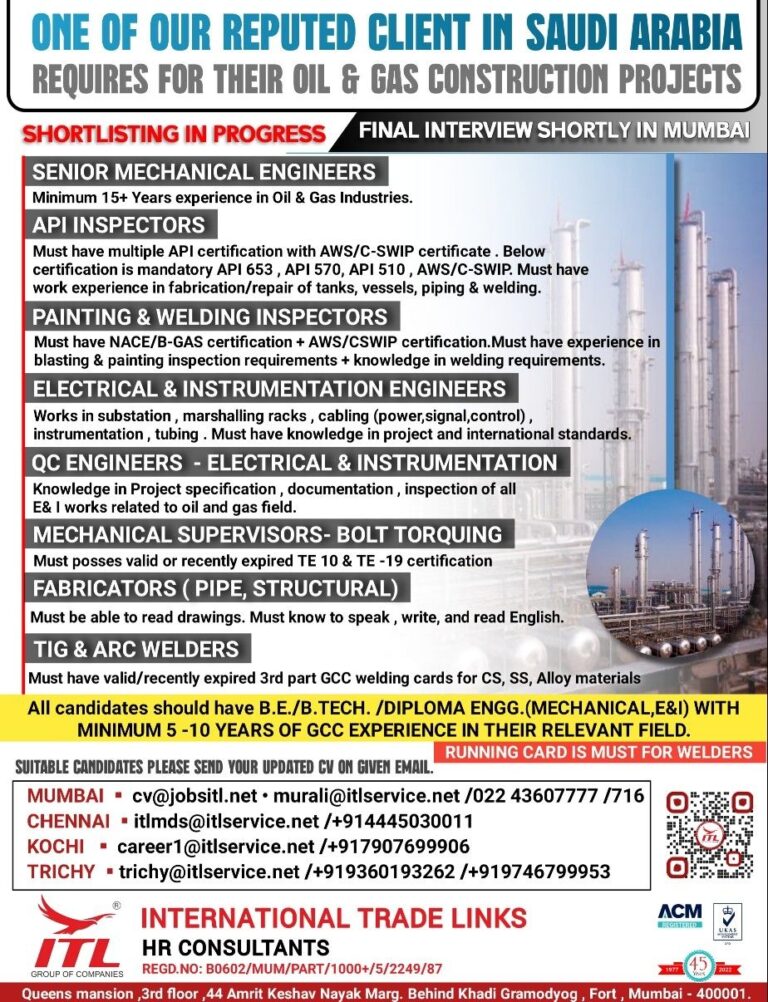 REQUIRED FOR REPUTED COMPANY SAUDI ARABIA
