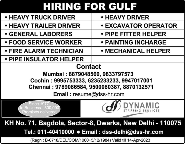 HIRING FOR GULF• HEAVY TRUCK DRIVER• HEAVY DRIVER• HEAVY TRAILER DRIVEREXCAVATOR OPERATORGENERAL LABORERS• PIPE FITTER HELPERFOOD SERVICE WORKERPAINTING INCHARGEFIRE ALARM …