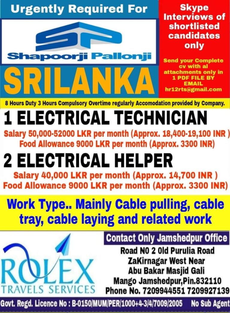 Urgently Required For SkypeInterviews of shortlisted candidates onlyShapoorji PallorÜiSend your Completecv with alSRILANKAattachments only in1 PDF FILE BYEMAILhr12rts@gmaiI.com8 Hours Duty …