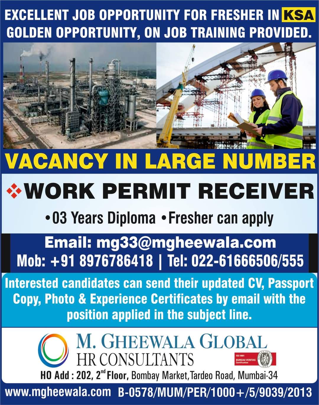 EXCELLENT JOB OPPORTUNITY FOR FRESHER IN KSA