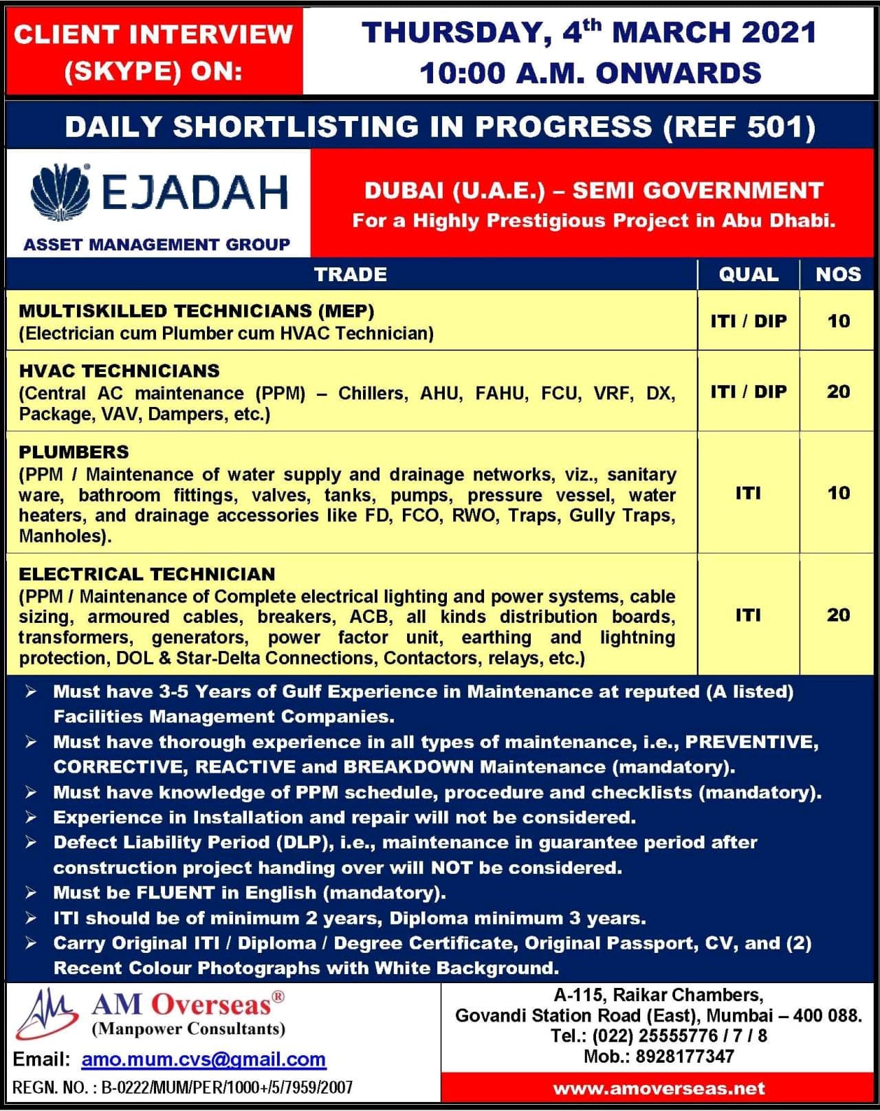 Must have 3-5 Years of Gulf Experience in Maintenance at reputed (A listed)