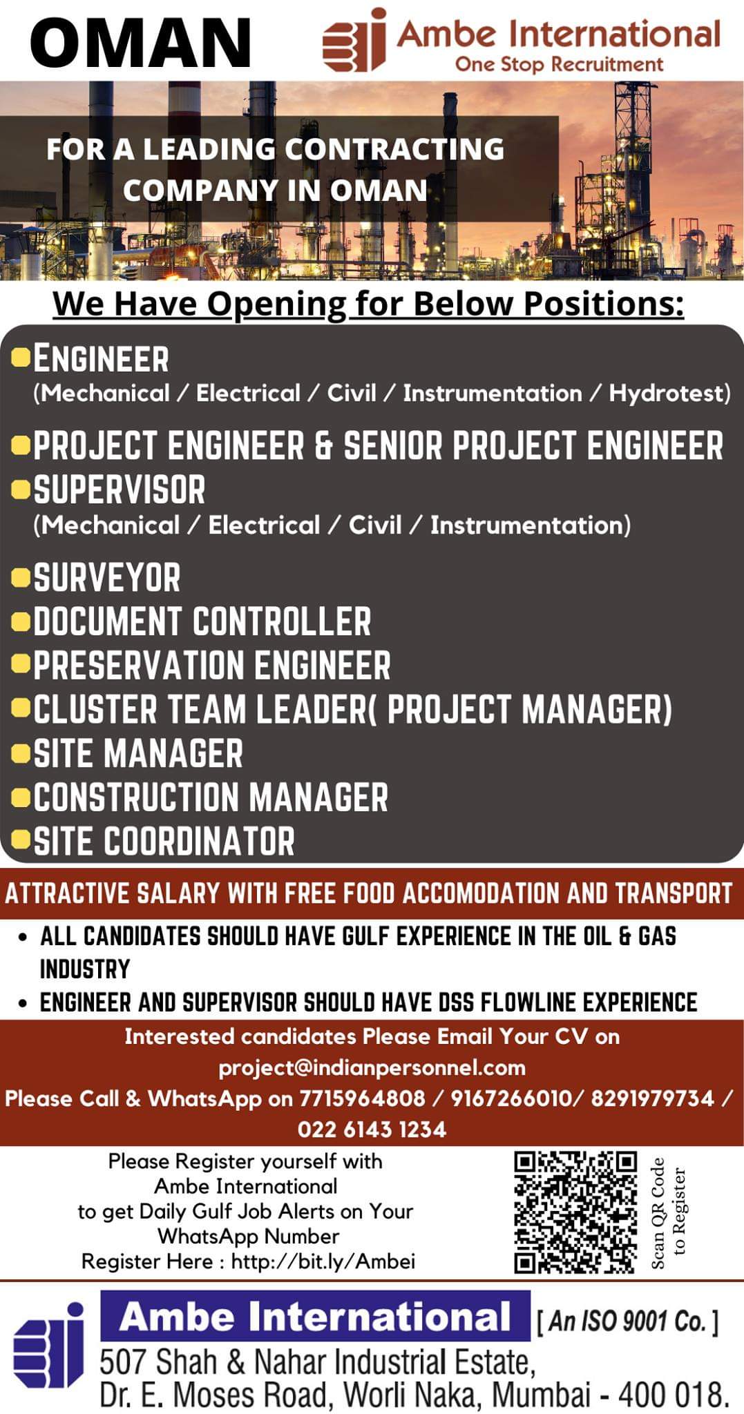 • ALL CANDIDATES SHOULD HAVE GULF EXPERIENCE IN THE OIL & GAS