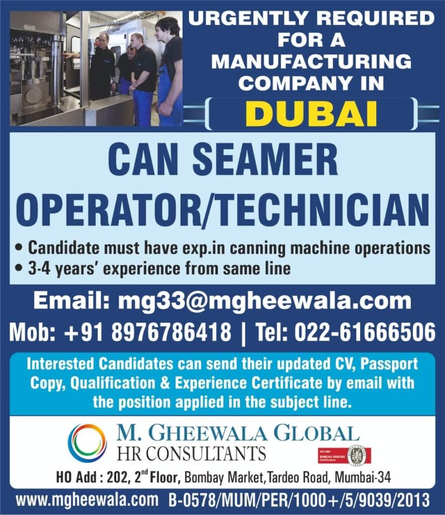 • Candidate must have exp.in canning machine operations