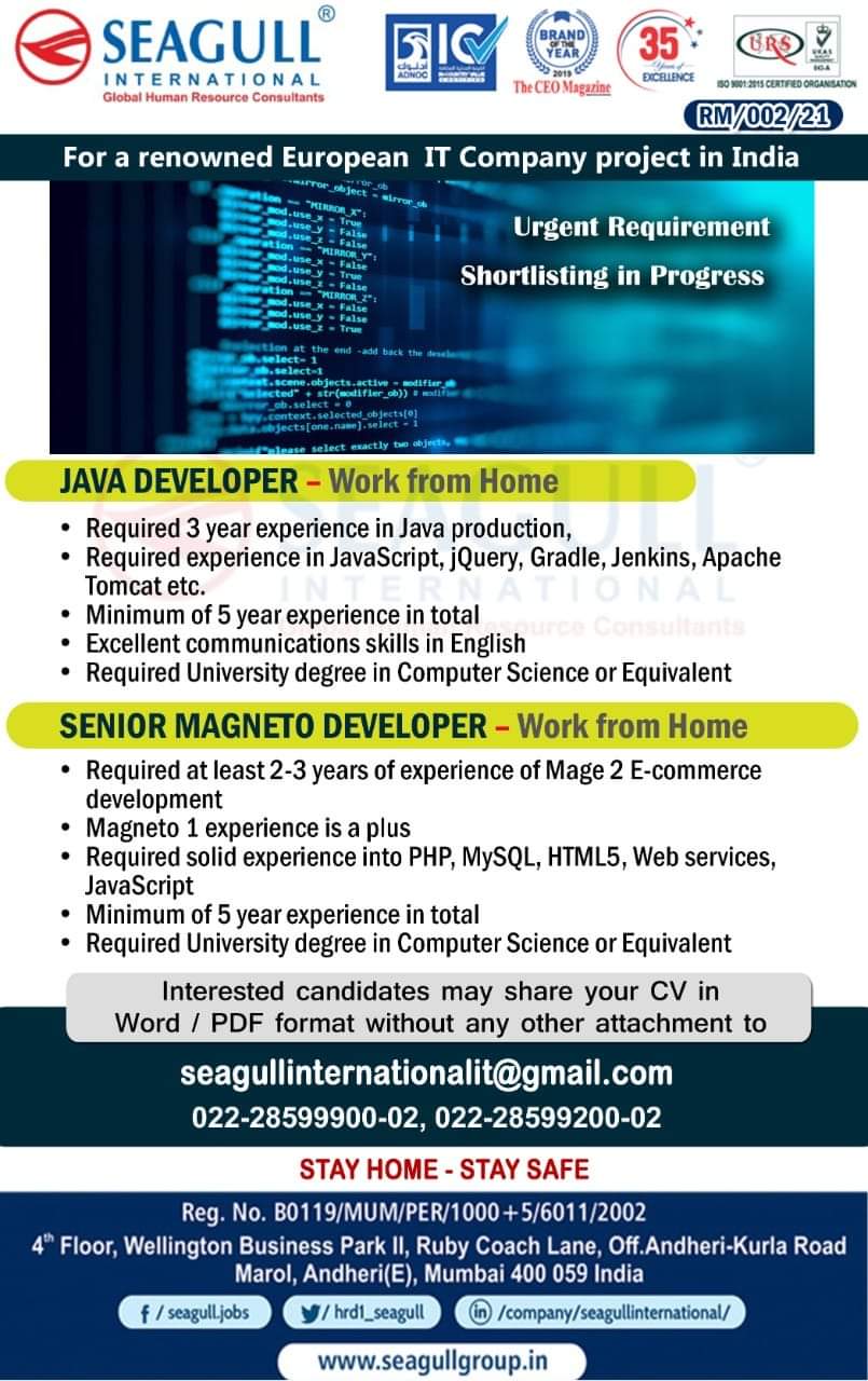 Required at least 2-3 years of experience of Mage 2 E-commerce
