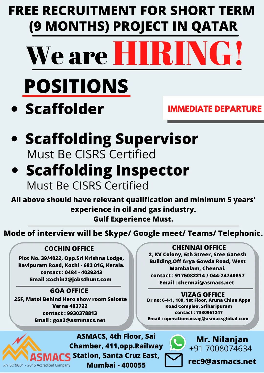 (9 MONTHS) PROJECT IN QATAR We are HIRING!