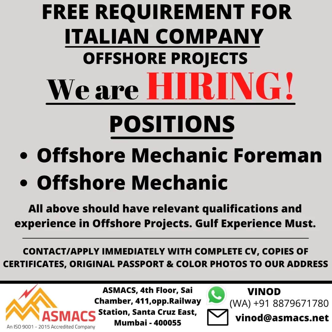 experience in Offshore Projects. Gulf Experience Must.