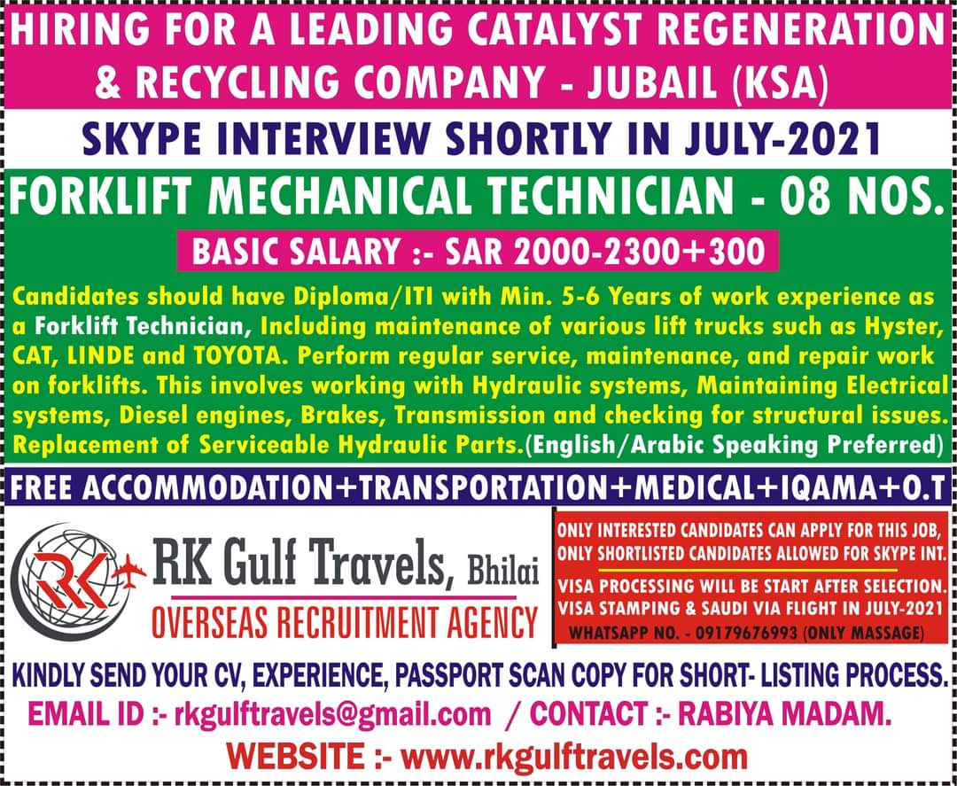 FORKLIFT MECHANICAL TECHNICIAN – 08 NOS.