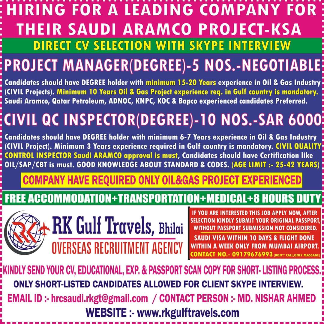 EMAIL ID :- hrcsaudi.rkgt@gmail.com / CONTACT PERSON :- MD. NISHAR AHMED