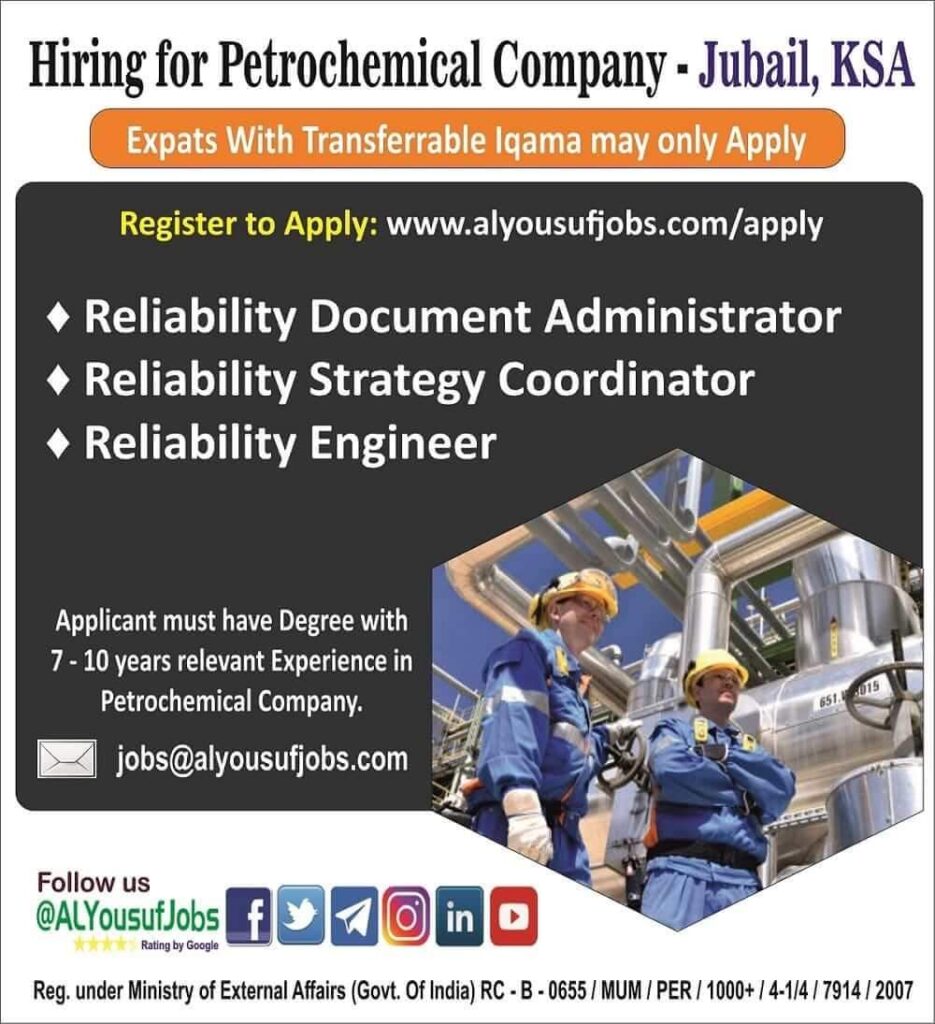 Hiring for Petrochemical Company – Jubail, KSA