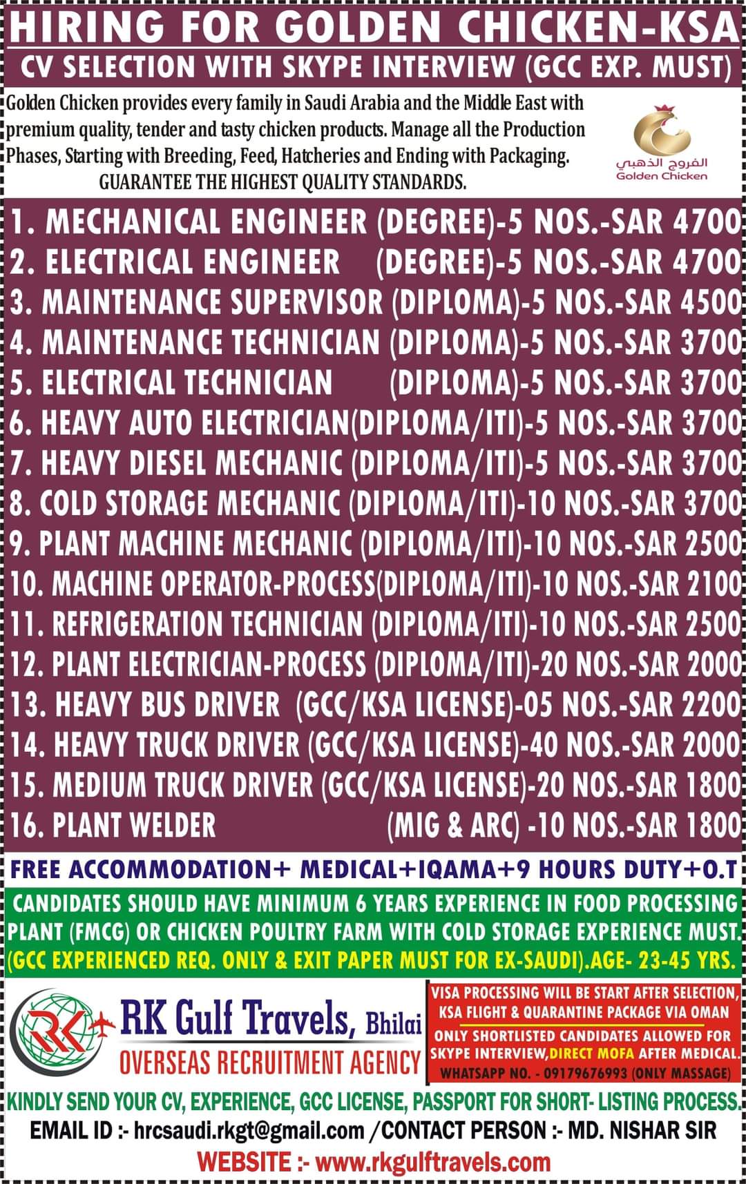(GCC EXPERIENCED REQ. ONLY a EXIT PAPER MUST FOR EX-SAUDI).AGE- 23-45 YRS. :