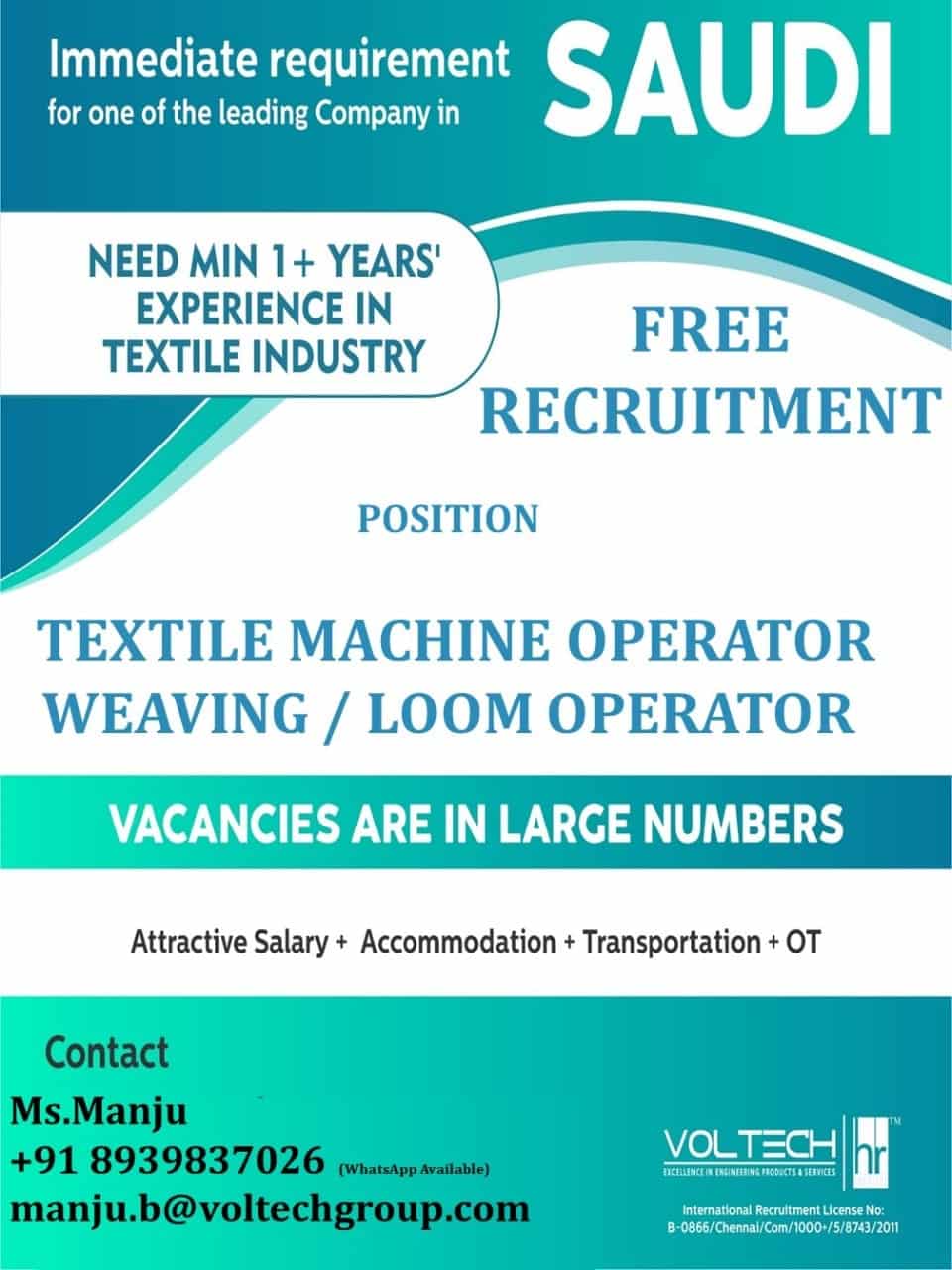 Attractive Salary + Accommodation + Transportation + OT