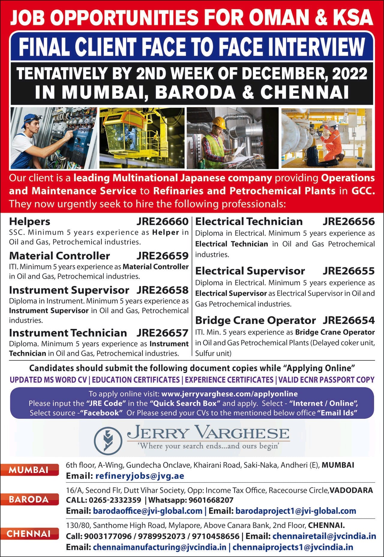 JOB OPPORTUNITIES FOR OMAN & KSA