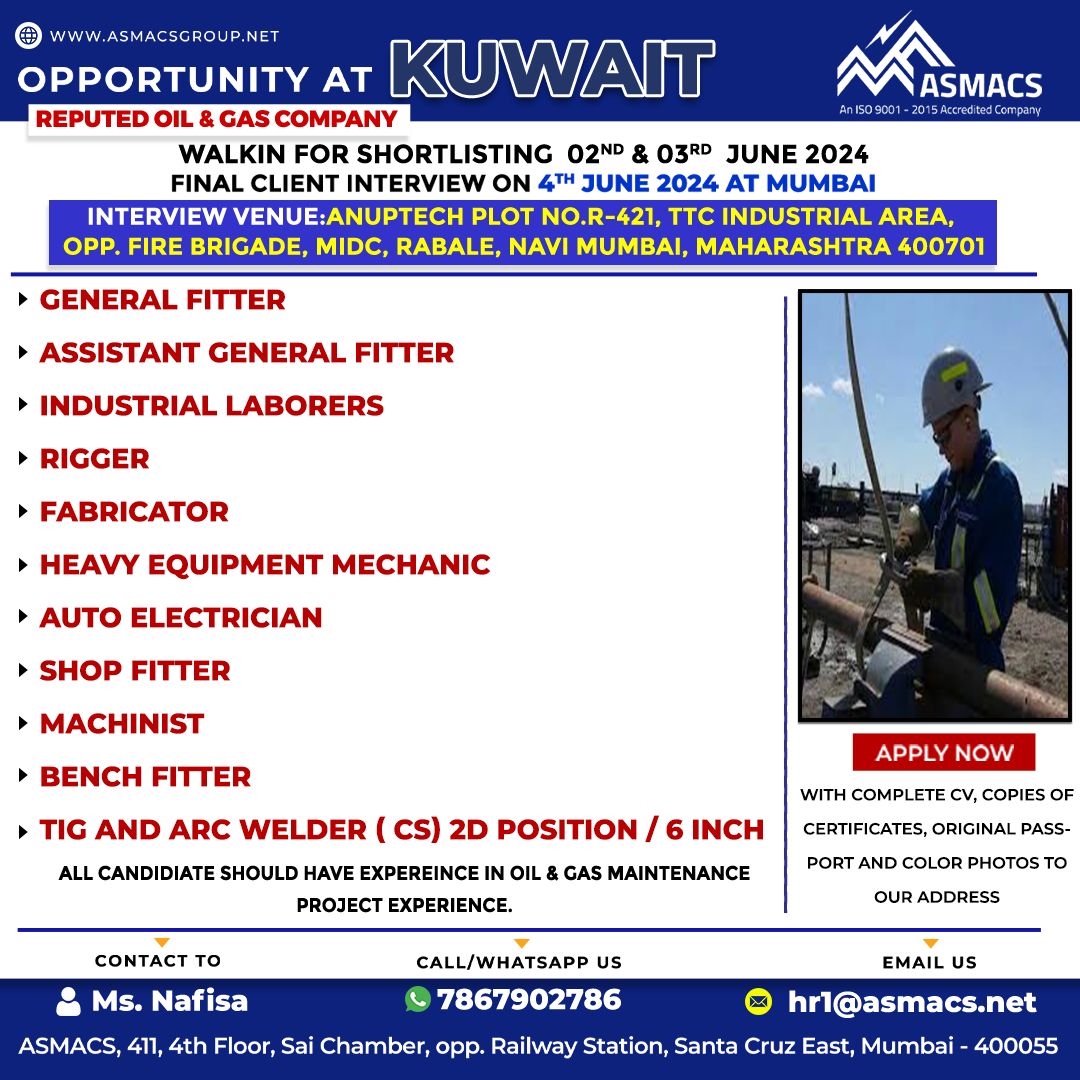 ALL CANDIDIATE SHOULD HAVE EXPEREINCE IN OIL & GAS MAINTENANCE