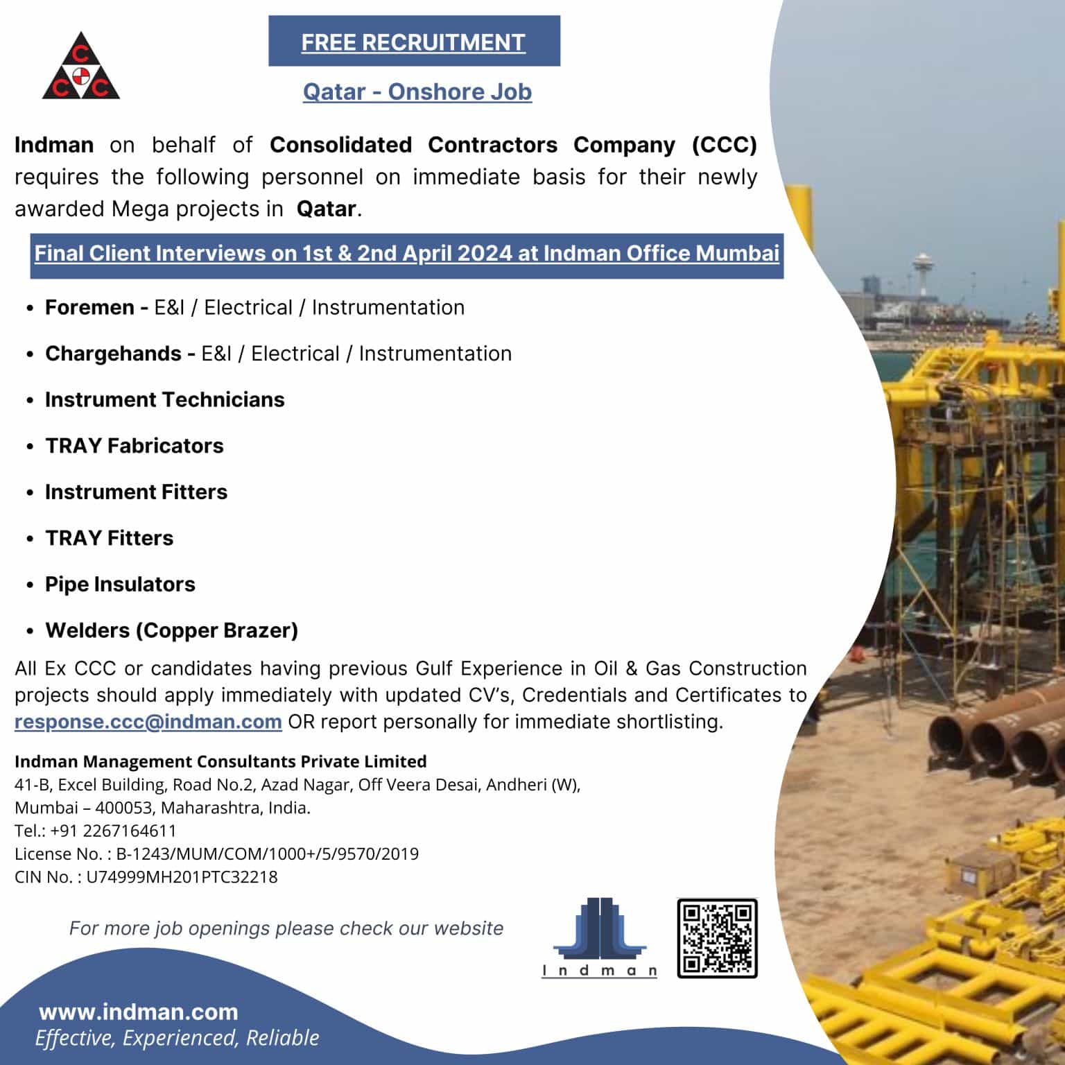 response.ccc@indman.com OR report personally for immediate shortlisting.