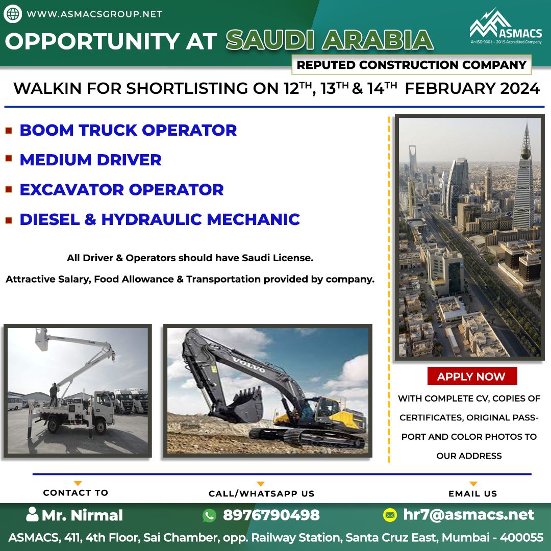 WALKIN FOR SHORTLISTING ON 12TH, 13TH & 14TH FEBRUARY 2024