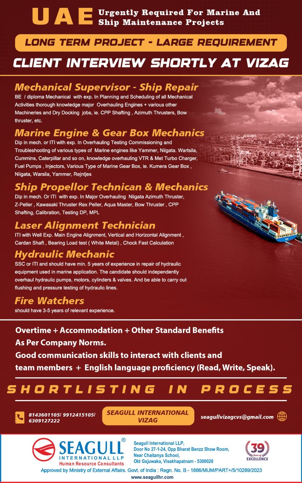 Machineries and Dry Docking jobs, ie. CPP Shafting, Azimuth Thrusters, Bow