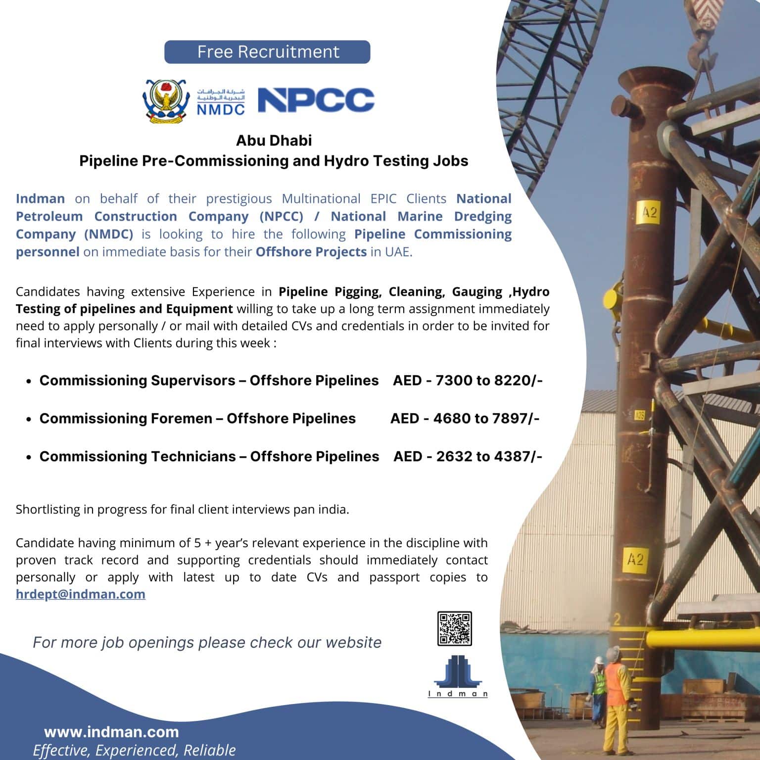 Company (NMDC) is looking to hire the following Pipeline Commissioning