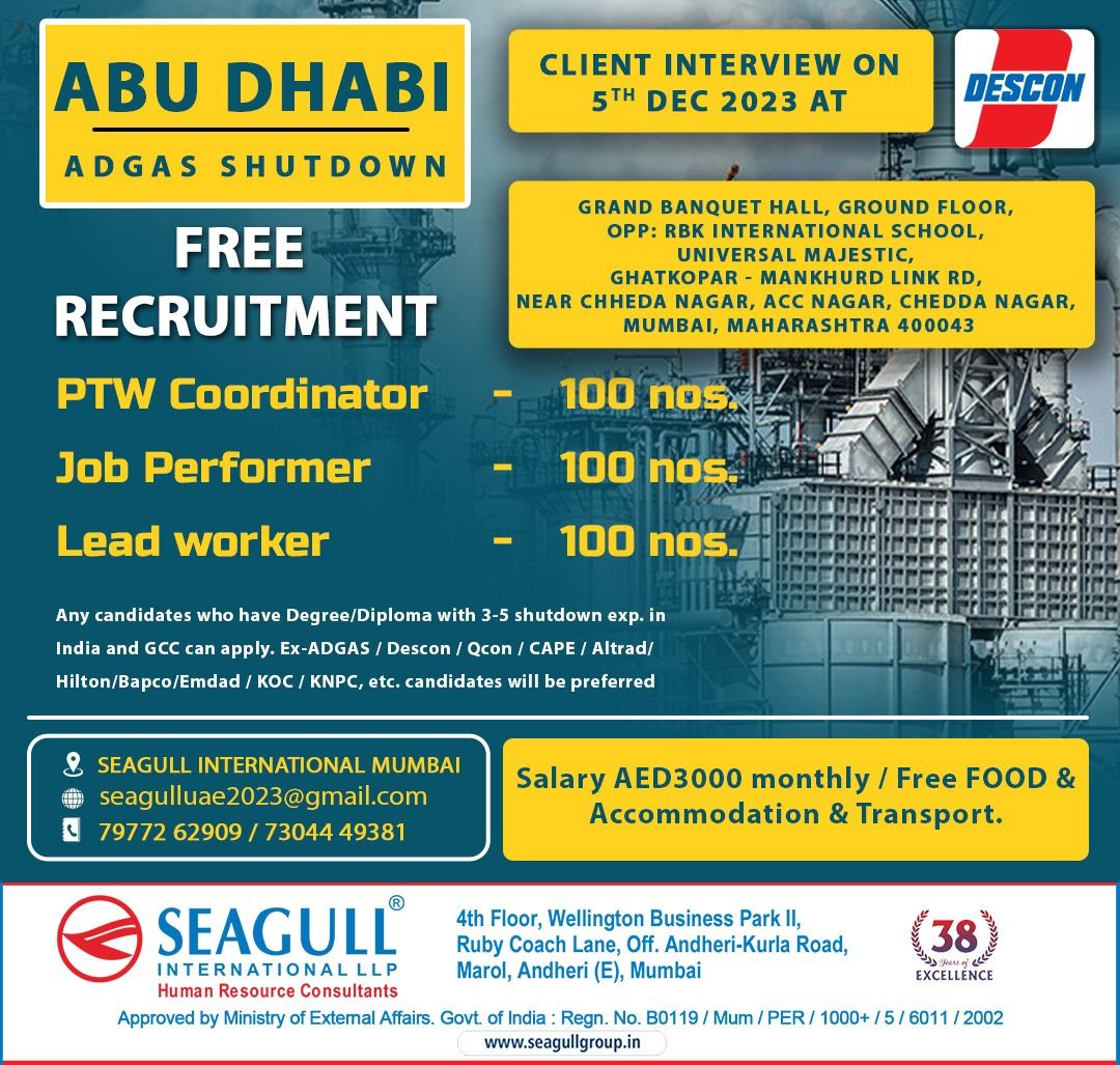 Jobs in Abu Dhabi 3 December 2023 Telegram Group Join Now ABU DHABIGAS SHUTDOWNFREE RECRUITMENTPTW CoordinatorJob PerformerLead worker Math& SEAGULL INTERNATIONAL MUMBAIseagulluae2023@gmail.com79772 62909/73044 49381 Telegram Group Join Now