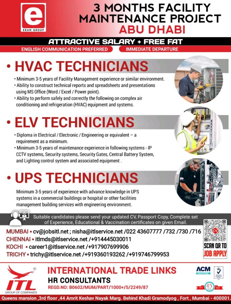 MUMBAI – cv@jobsitl.net; nisha@itlservice.net /022 43607777/732/730/716