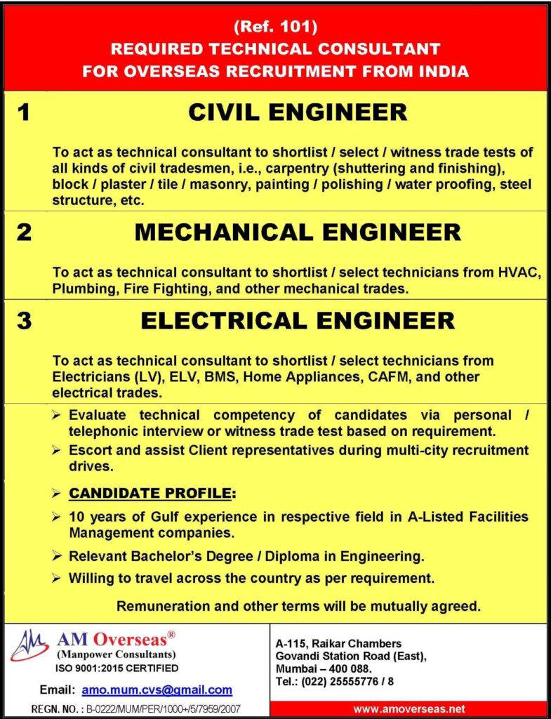 To act as technical consultant to shortlist / select technicians from HVAC,