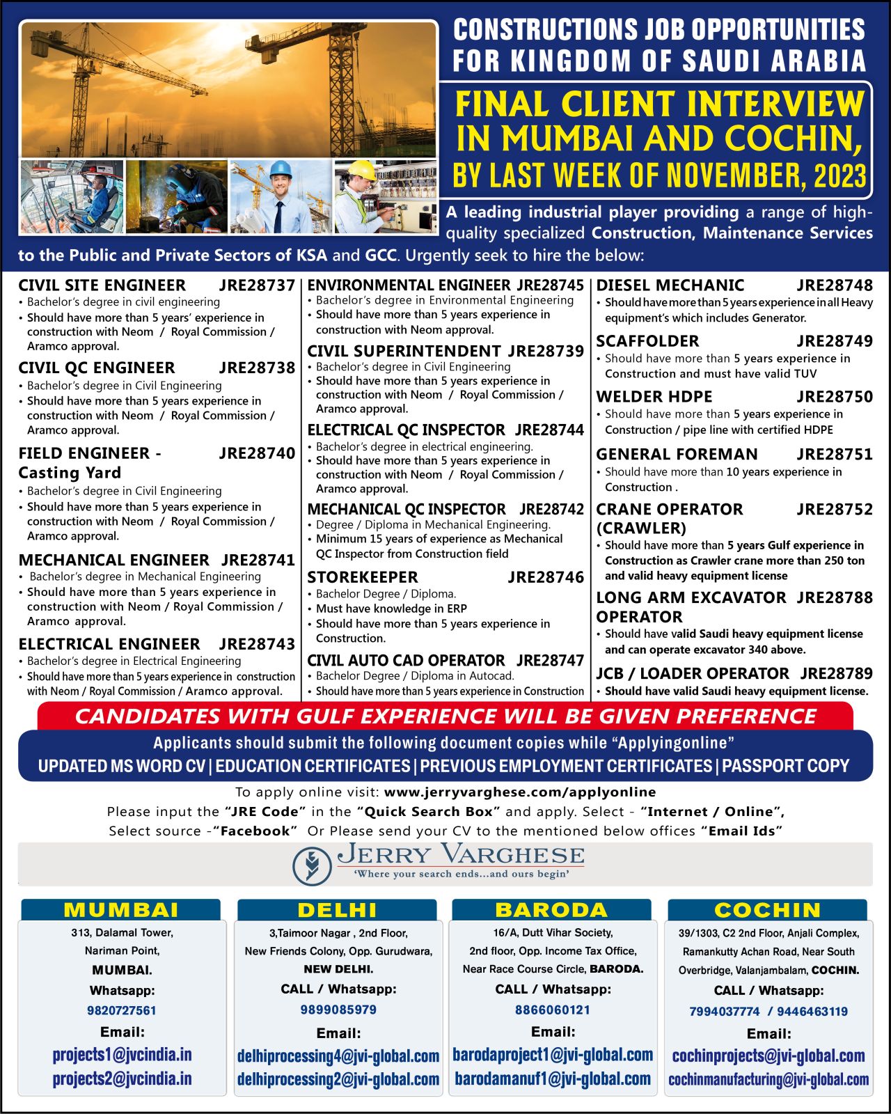 Should have valid Saudi heavy equipment license. - Should have more than 5 years experience in Construction