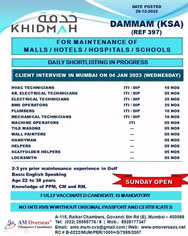 CLIENT INTERVIEW IN MUMBAI ON 04 JAN 2023 (WEDNESDAY)
