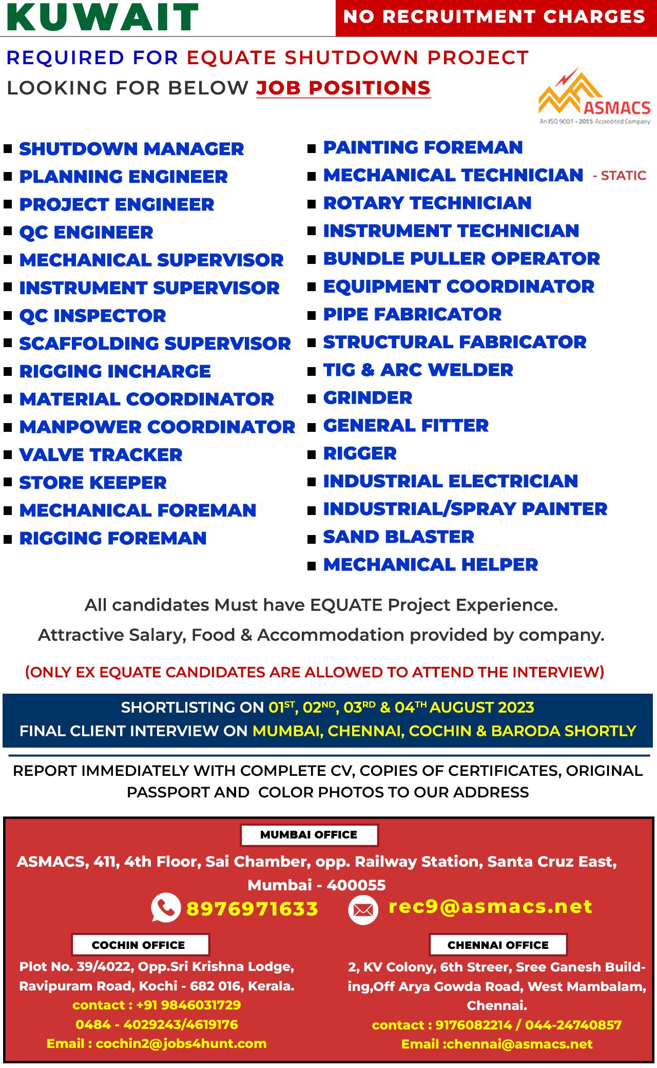 (ONLY EX EQUATE CANDIDATES ARE ALLOWED TO ATTEND THE INTERVIEW)