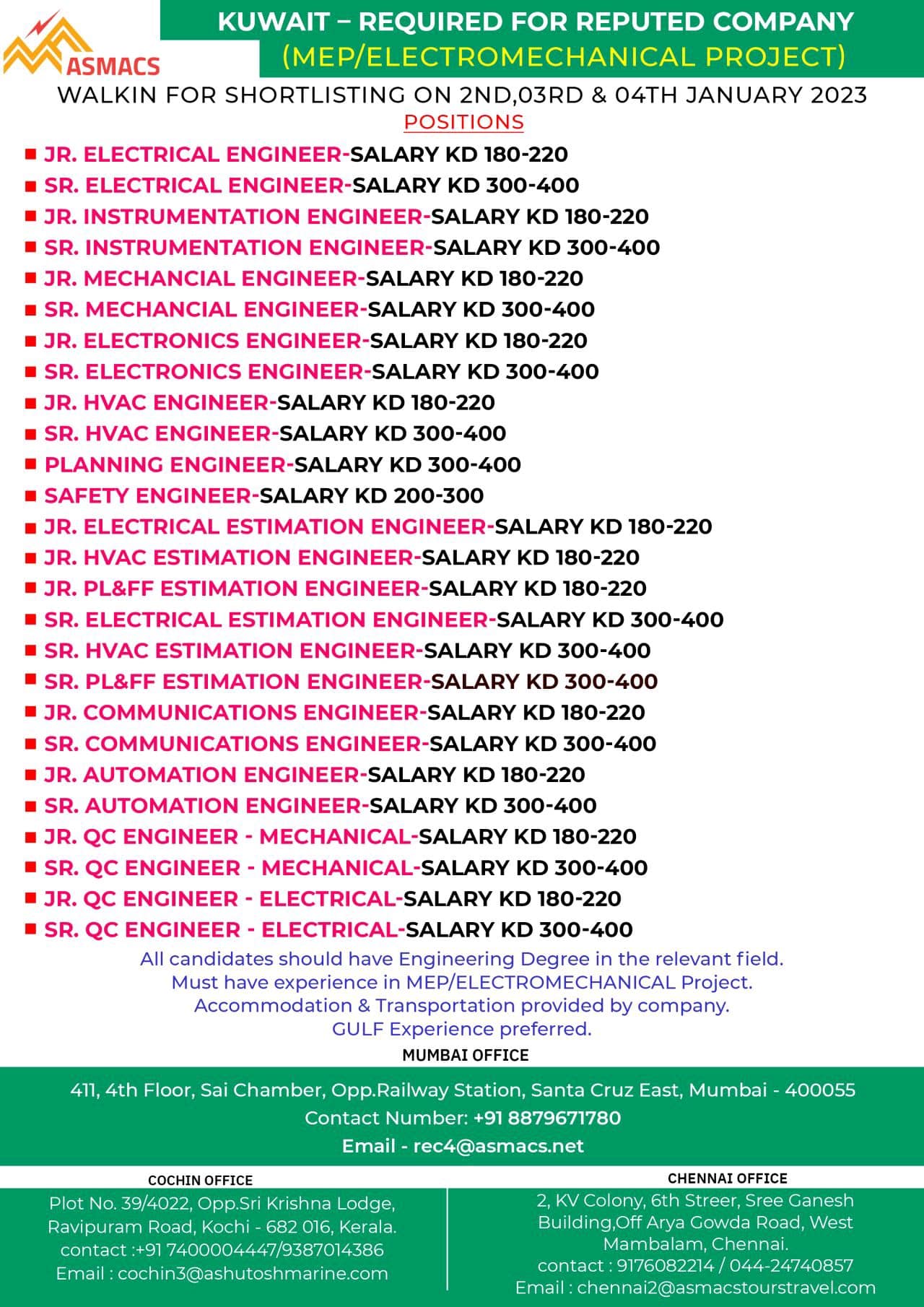 ■ SR. HVAC ENGINEER-SALARY KD 300-400