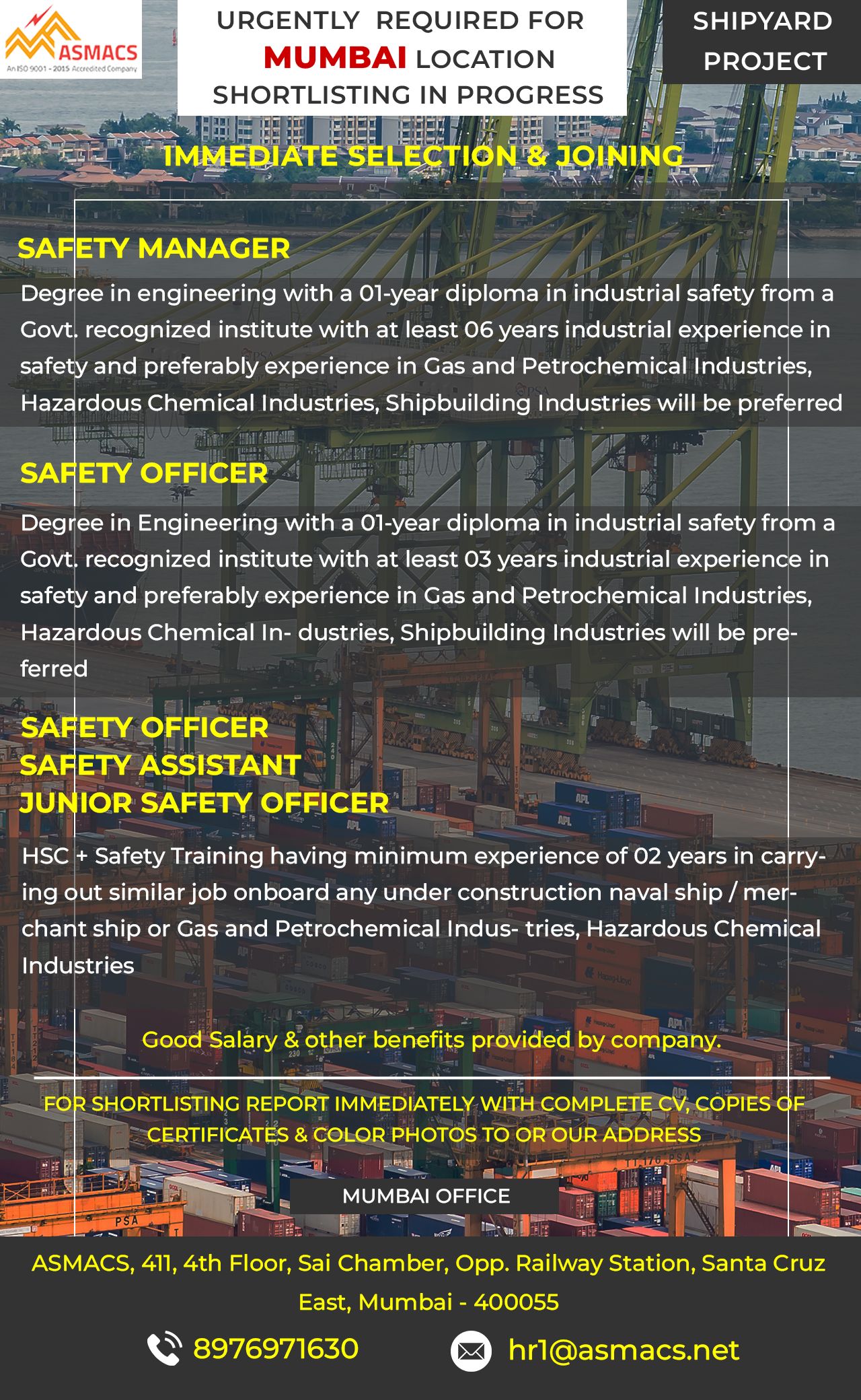 URGENTLY REQUIRED FOR SHIPYARD MUMBAI LOCATION