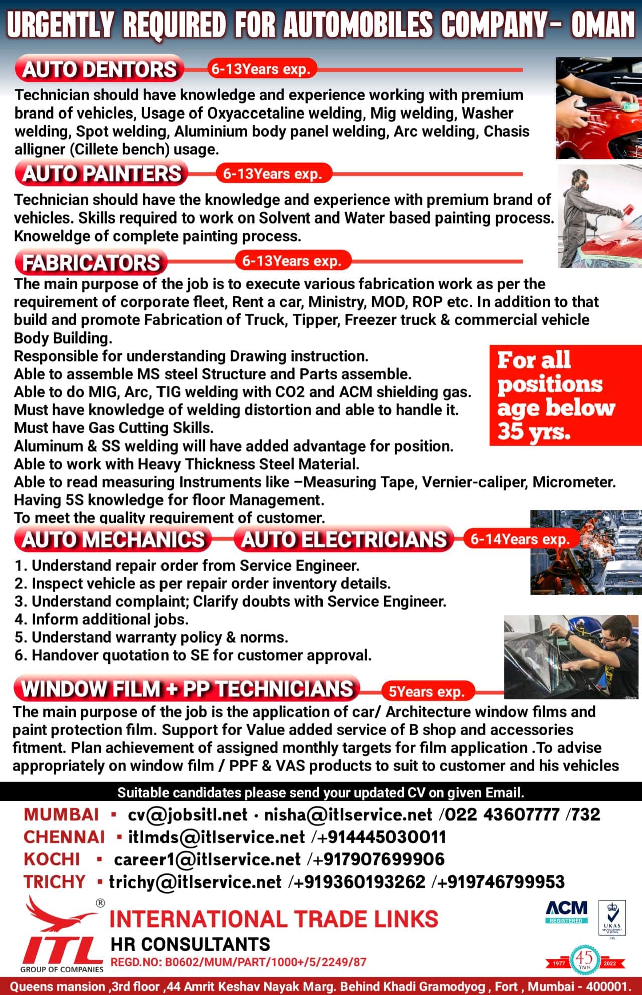 URGENTLY REQUIRED FOR AUTOMOBILES COMPANY- OMAN