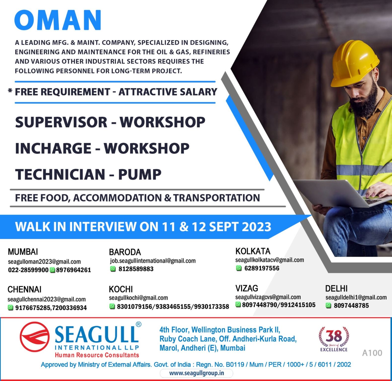 A LEADING MFG. & MAINT. COMPANY, SPECIALIZED IN DESIGNING, ENGINEERING AND MAINTENANCE FOR THE OIL & GAS, REFINERIES AND VARIOUS OTHER INDUSTRIAL SECTORS REQUIRES THE FOLLOWING PERSONNEL FOR LONG-TERM PROJECT.