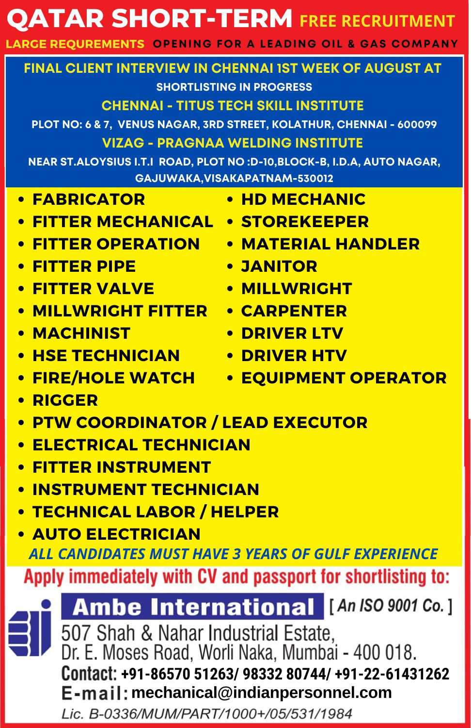Interested Candidates mail your CV to: mechanical@indianpersonnel.com