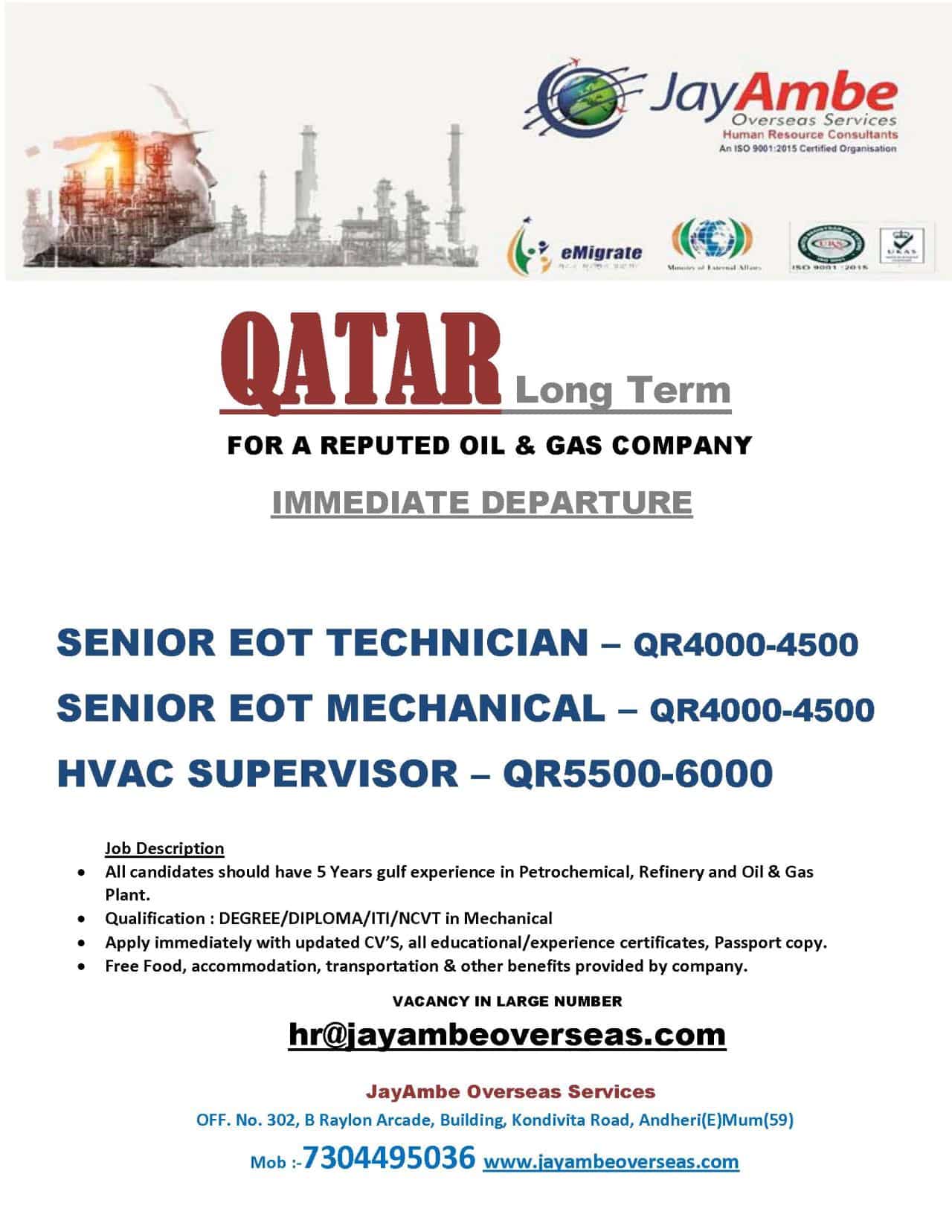 All candidates should have 5 Years gulf experience in Petrochemical, Refinery and Oil & Gas