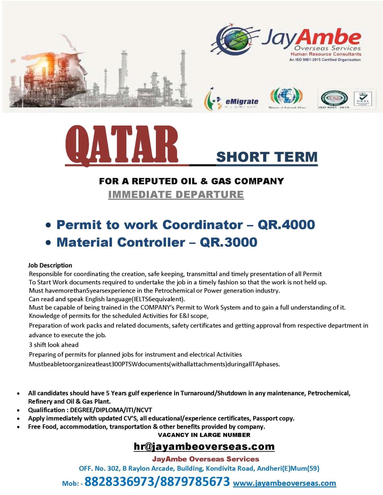All candidates should have 5 Years gulf experience in Turnaround/Shutdown in any maintenance, Petrochemical,