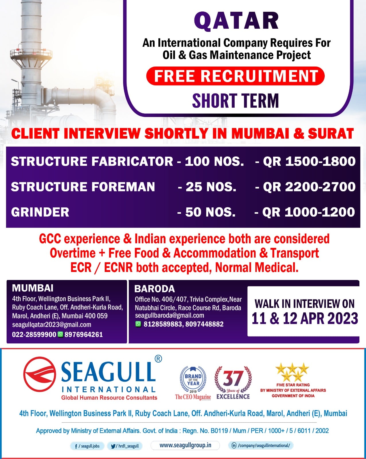 Marol, Andheri (E), Mumbai 400 059 seagullqatar2023@gmail.com 022-285999008976964261
