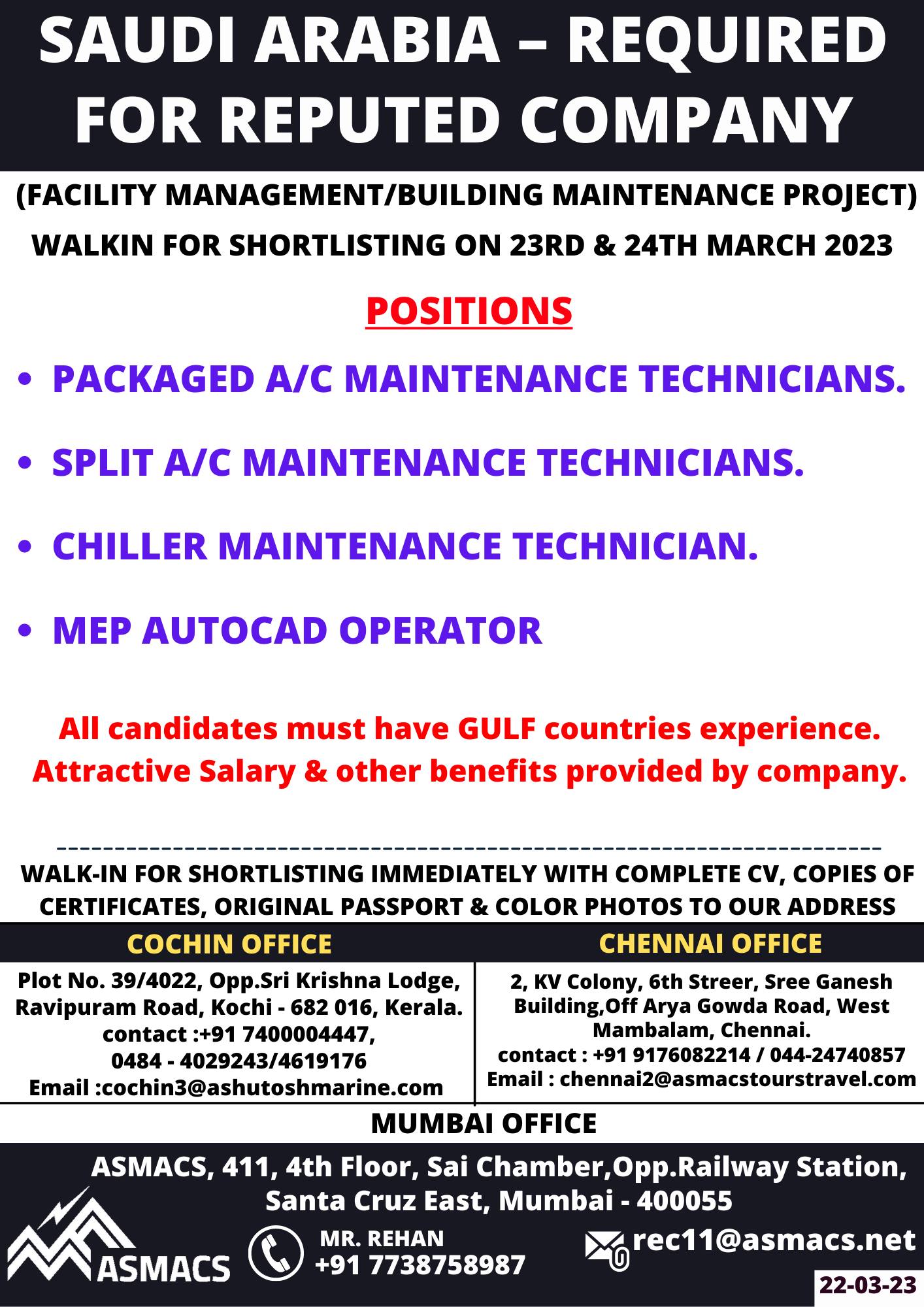 (FACILITY MANAGEMENT/BUILDING MAINTENANCE PROJECT) WALKIN FOR SHORTLISTING