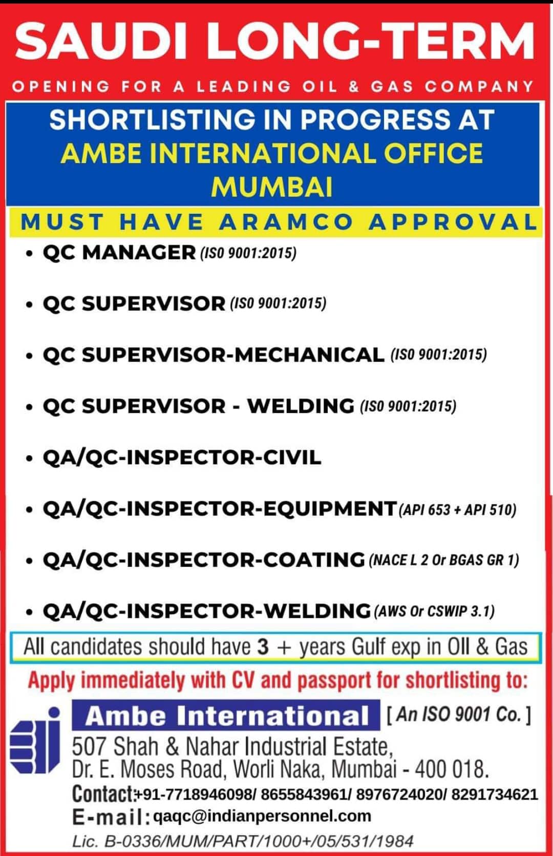 • QA/QC-INSPECTOR-COATING (NACE L 2 Or BGAS GR 1)