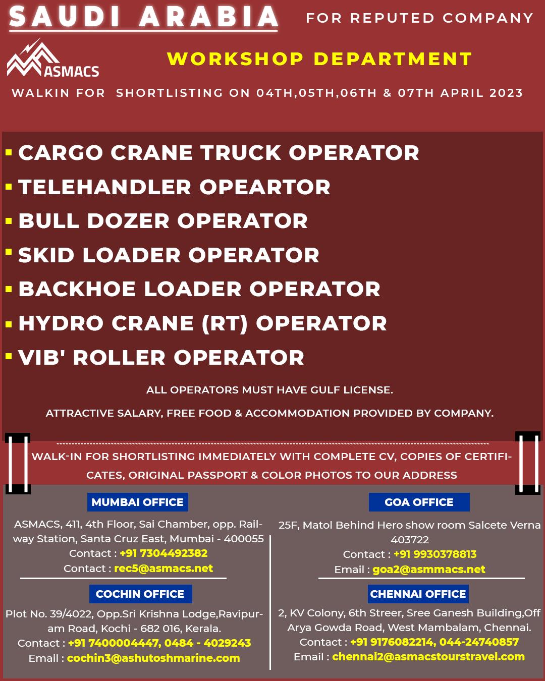 WALKIN FOR SHORTLISTING ON 04TH,05TH, 06TH & 07TH APRIL 2023
