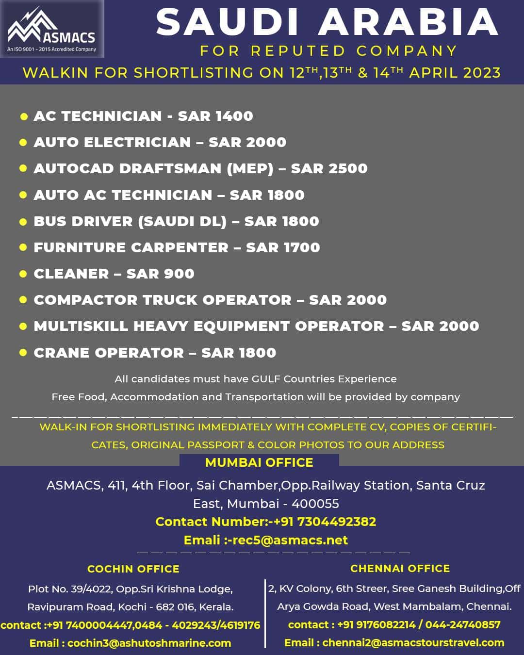 - BUS DRIVER (SAUDI DL) – SAR 1800