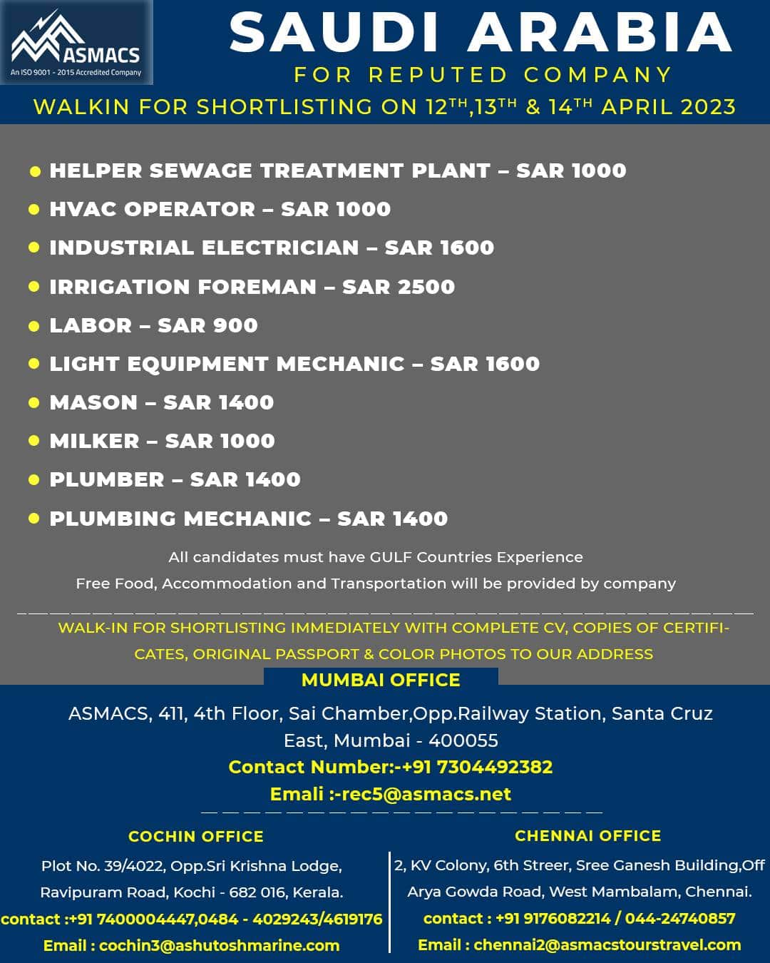 - LIGHT EQUIPMENT MECHANIC – SAR 1600