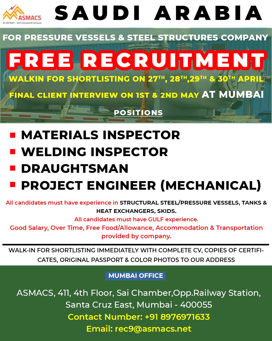 WALKIN FOR SHORTLISTING ON 27TH, 28TH,29TH & 30TH APRIL
