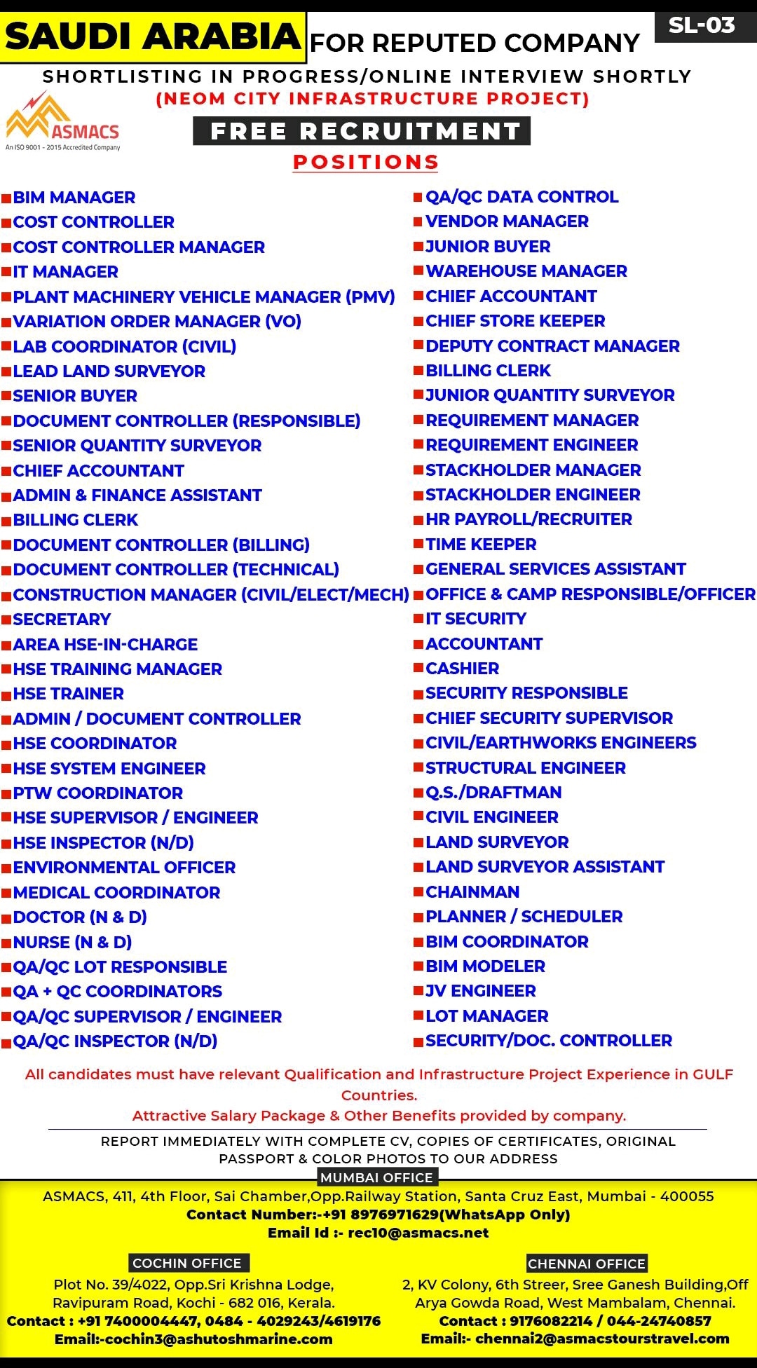 All candidates must have relevant Qualification and Infrastructure Project Experience in GULF