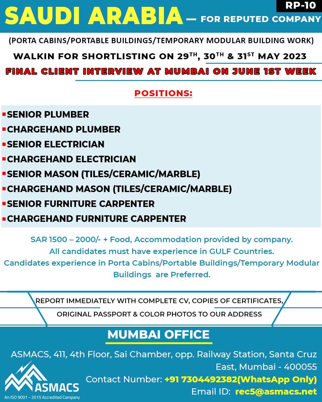 ▪SENIOR MASON (TILES/CERAMIC/MARBLE)