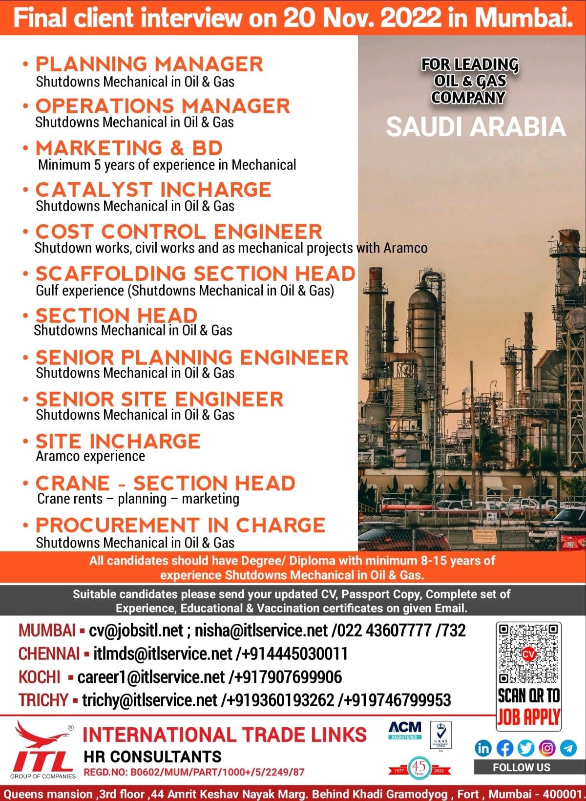 MUMBAI cv@jobsitl.net ; nisha@itlservice.net/022 43607777 /732