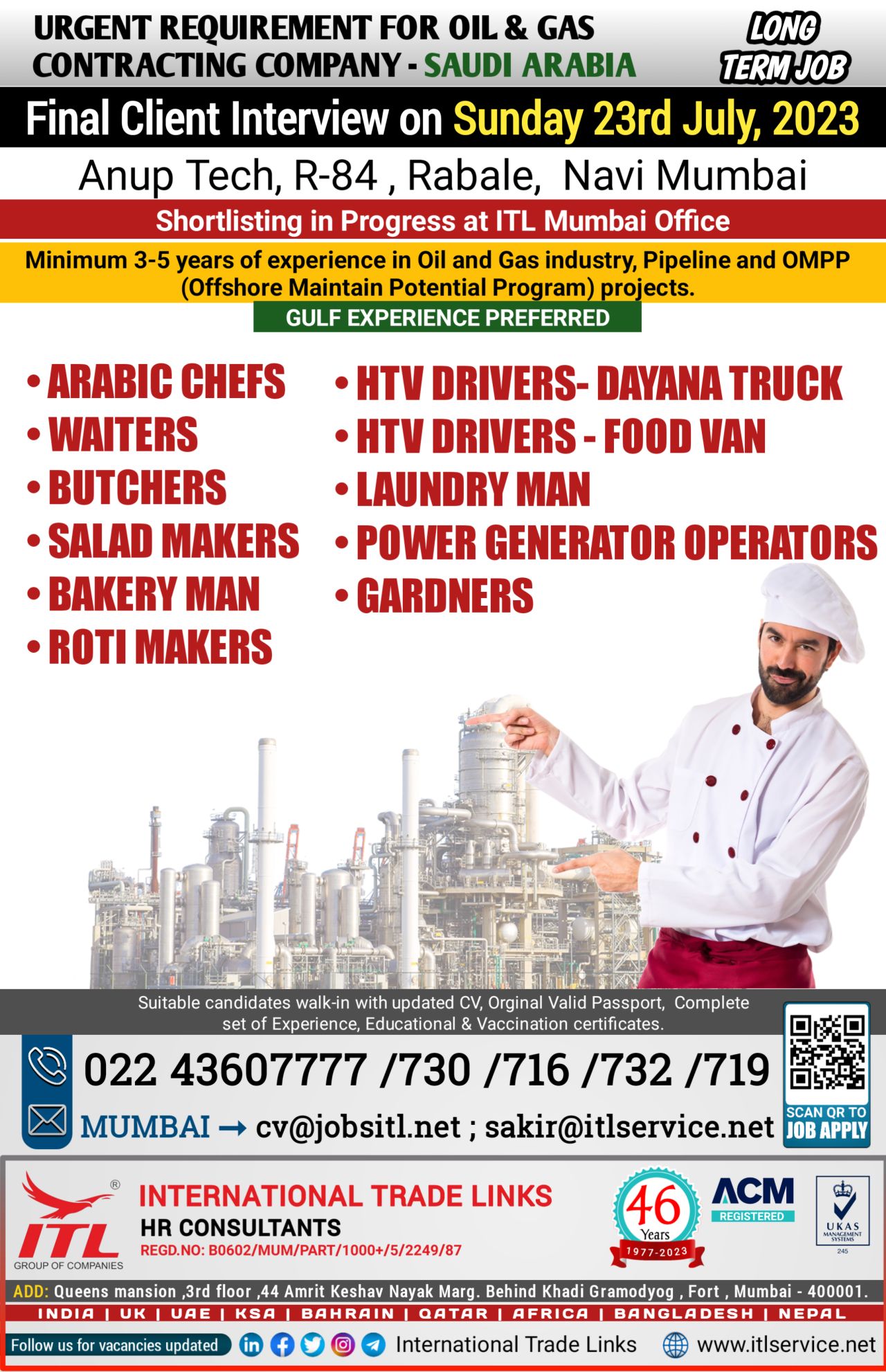 MUMBAI → cv@jobsitl.net; sakir@itlservice.net JOB APPLY